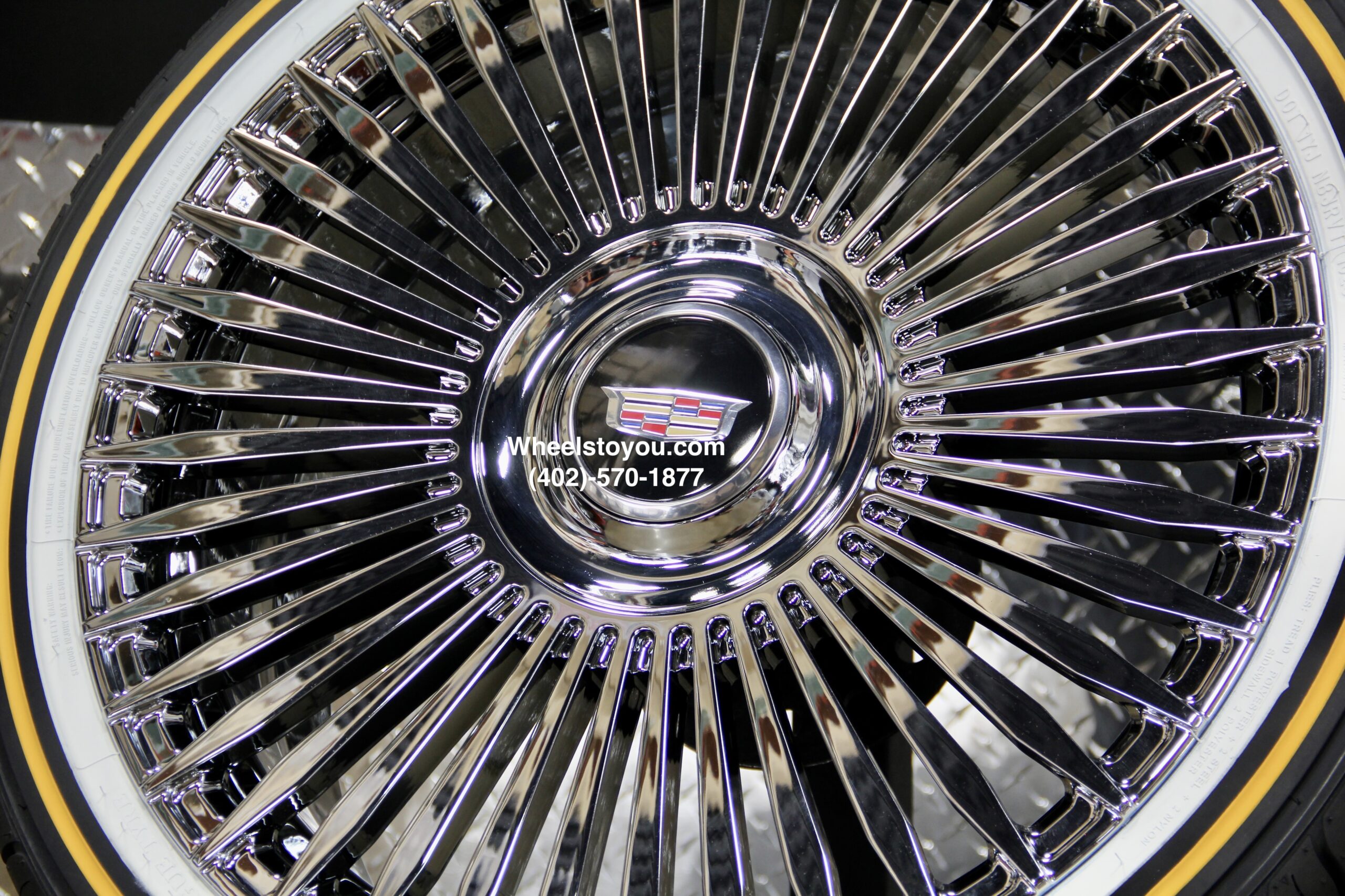 We have these Beautiful New Chrome 22″ with Floating Cadillac Emblem Caps & Vogue Tires In Stock and Ready for Pickup or To SHIP TO YOU!