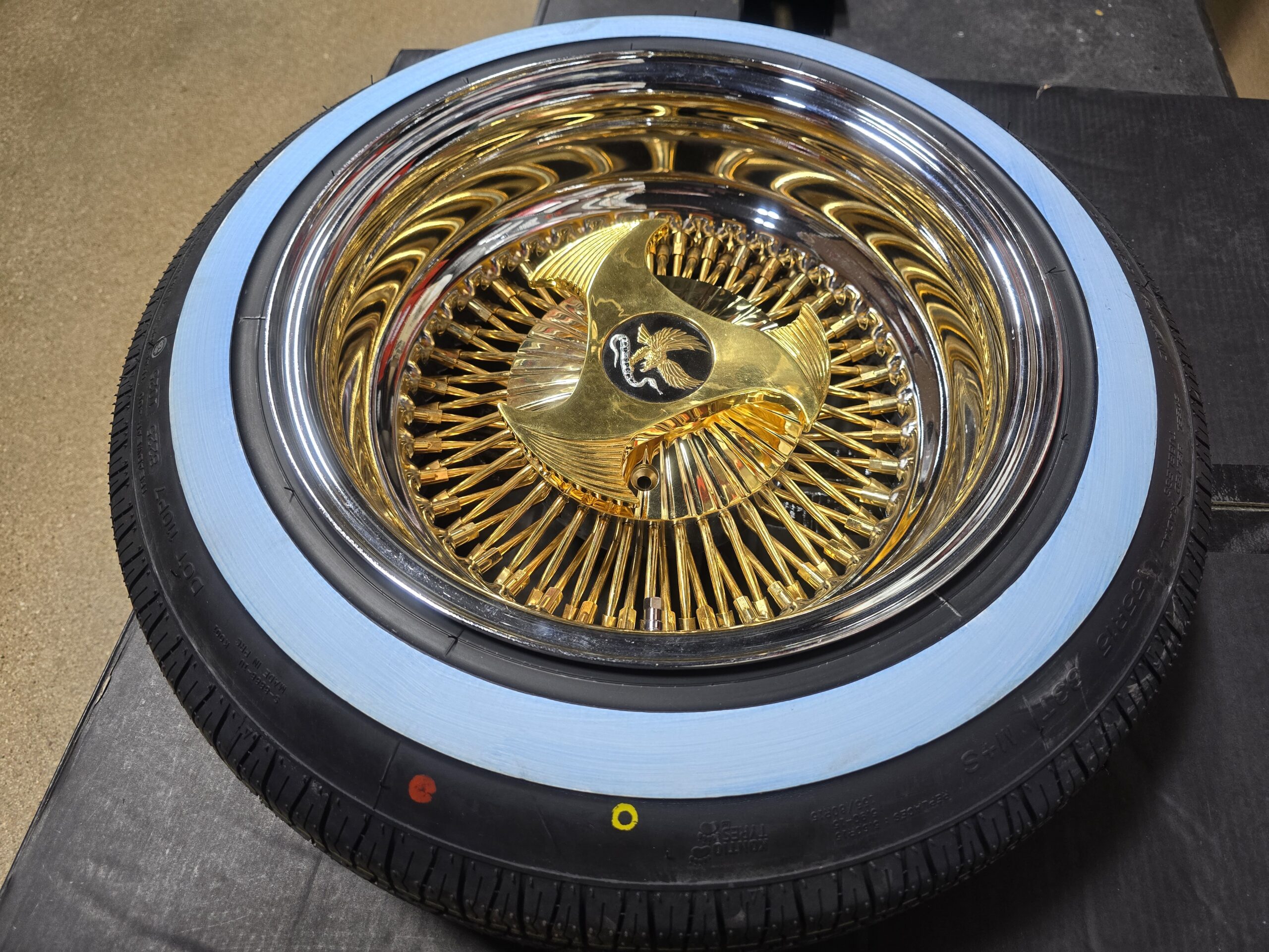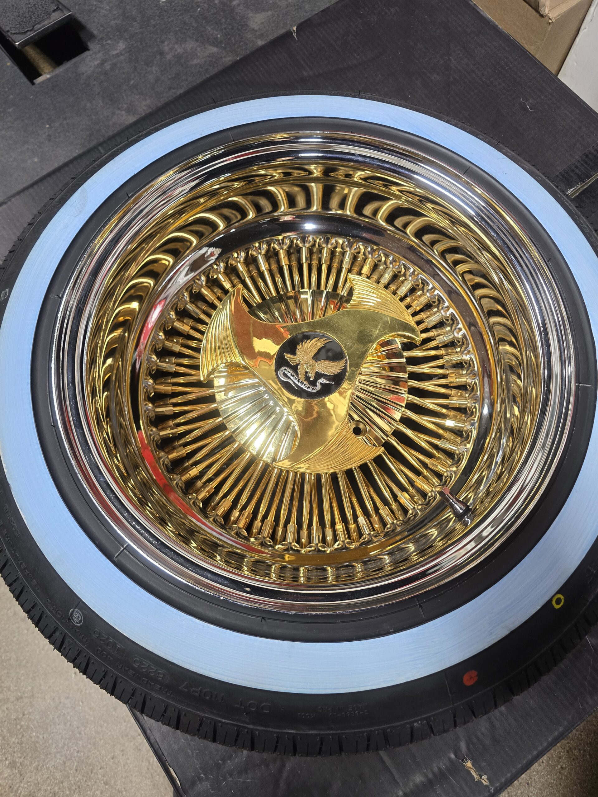 LOOKING FOR that 90s style CLASSIC DIRECT BOLT WIRE WHEEL & TIRE PACKAGE READY TO SLAP ON IN YOUR DRIVEWAY? HERE IT IS, COMPLETE SET OF FOUR (4) READY TO BOLT ON!